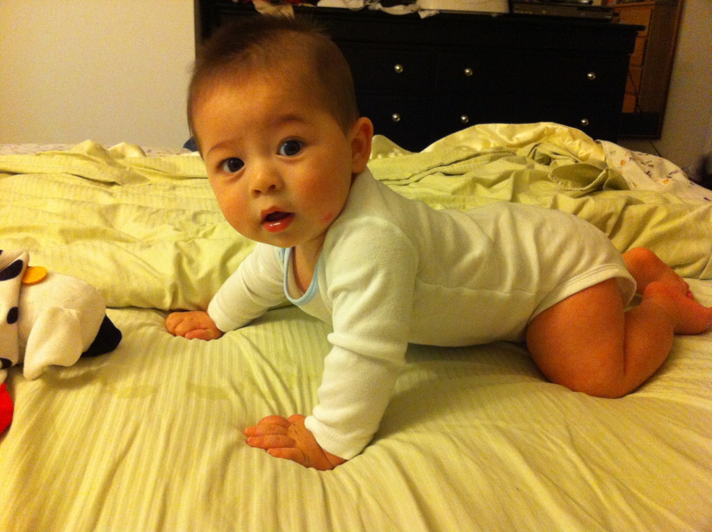 Apollo started pushing up onto hands and knees yesterday. Today he’s been rocking back and forth on them!